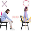 - 背もたれにもたれず、軽く骨盤を立てるイメージ